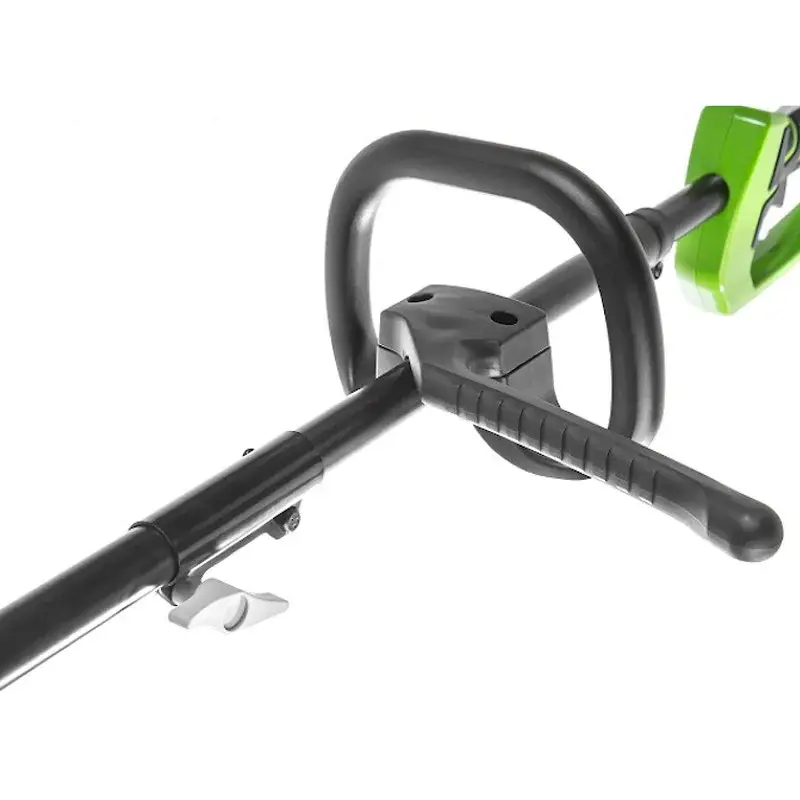 Триммер Greenworks GD40BCK6 комплектуется зарядным устройством и универсальной аккумуляторной батареей с индикацией уровня заряда, которая подходит для других инструментов Greenworks из линейки 40V. D-образную ручку можно установить на нужной для оператора высоте. Бесщеточный электродвигатель с защитой от перегрузки имеет продолжительный срок службы, прост в обслуживании. Инструмент удобно держать в руках благодаря прорезиненным вставкам на рукоятках. Наплечный ремень облегчает переноску триммера.