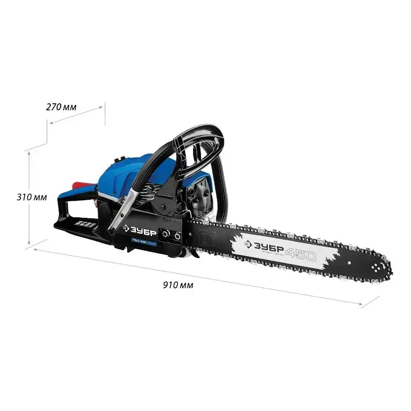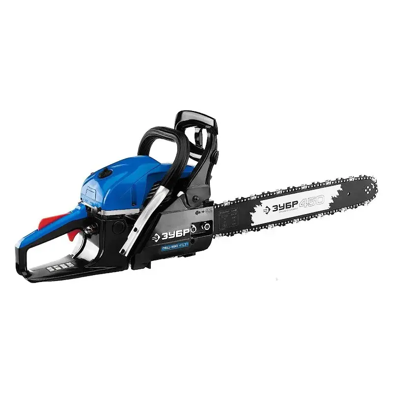 Бензопила ЗУБР ПБЦ-490 45ДП с мощностью 2200 Вт. Подходит для распила досок или стволов из разных видов древесины. В комплект поставки входит защитный кожух шины.