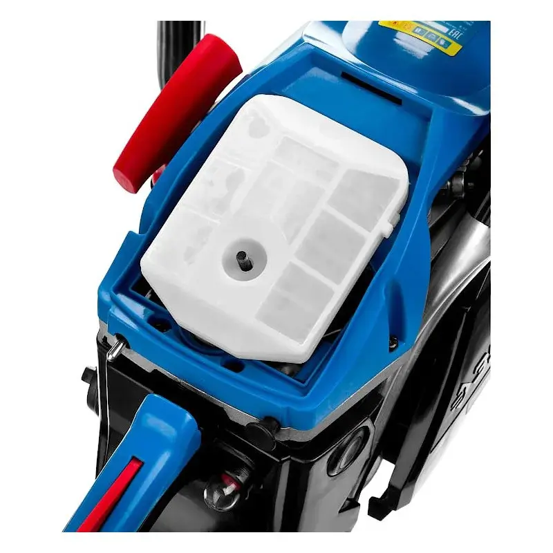 Благодаря длине направляющей шины 450 мм мотопила без труда обработает заготовки разного размера и толщины. Частота вращения 12500 об/мин позволяет проводить чистый рез материала.