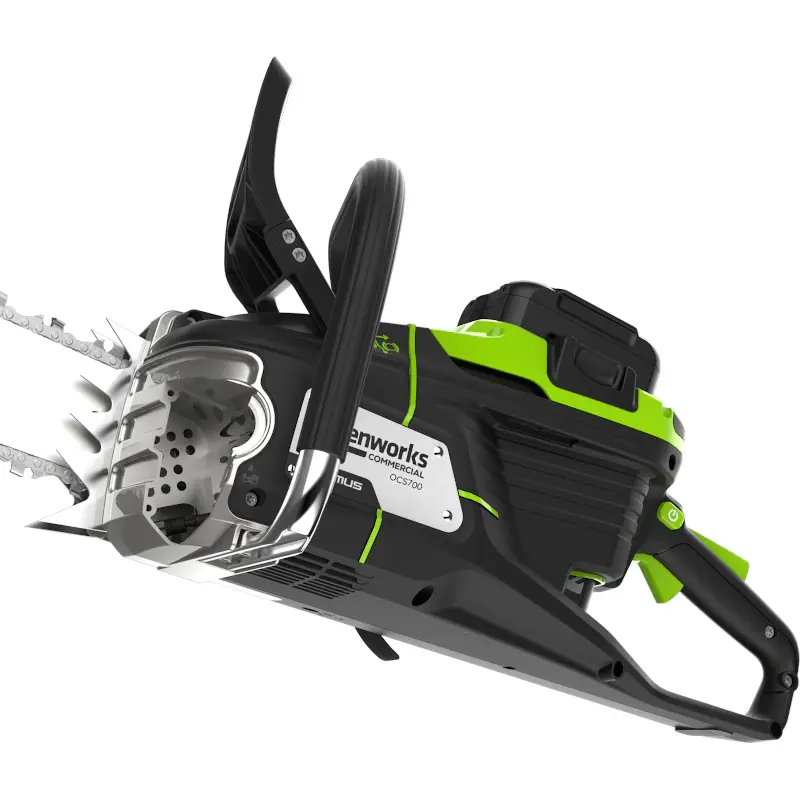 Цепная аккумуляторная пила Greenworks OCS600 отличается высокой производительностью и предназначена для профессионального применения. Инструмент оснащен бесщеточным двигателем мощностью 3,6 кВт, шиной длиной 45 см и цепью Oregon, что позволяет ему конкурировать с бензиновыми аналогами с объемом цилиндра 65 см3. Отсутствие вредных выхлопов, низкий уровень шума и вибрации делают ее идеальным выбором для продолжительной работы.