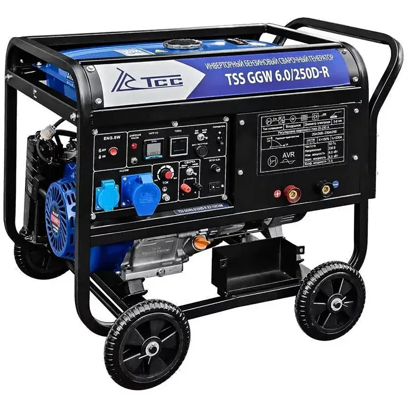 Бензиновый инверторный сварочный генератор ТСС TSS GGW 6.0/250D-R - это надежный и мощный аппарат для проведения профессиональной ручной дуговой сварки и питания электропотребителей в условиях отсутствия стационарной сети. Он оснащен 4-тактным бензиновым двигателем TSS S460 мощностью 12,5 л.с. и топливным баком на 25 л, что обеспечивает длительную работу без дозаправки.