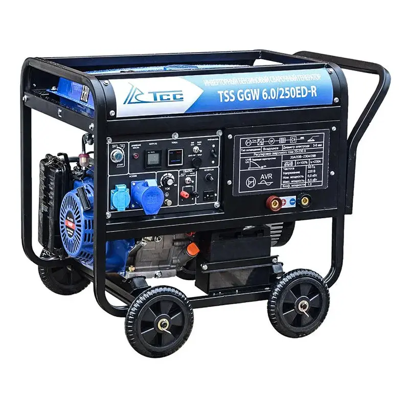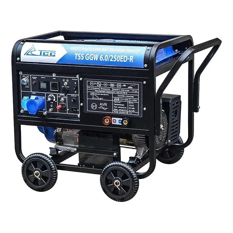 Сварочный бензиновый генератор TSS GGW 6.0/250ED-R — предназначен для проведения профессиональной Ручной Дуговой Сварки и питания электропотребителей в условиях отсутствия стационарной сети электроснабжения.