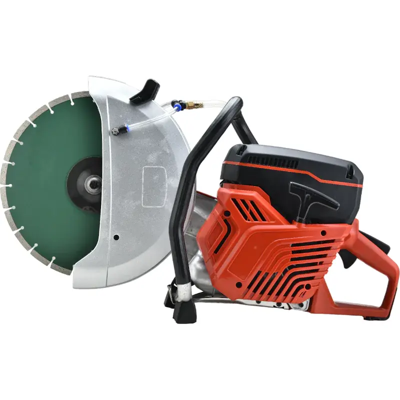 Бензорез ТСС GT-7280S, рассчитанный на установку дисков диаметром 350 мм, подходит для разрезания асфальта, брусчатки, гранита или изделий из камня. Инструмент незаменим при проведении спасательных работ в случае обрушения дома или выполнении прочих задач, связанных с демонтажем строительных конструкций из бетона и стали. Скорость вращения оснастки на холостом ходу составляет 4800 об/мин, максимальный крутящий момент — 6,9 Нм. Для повышения удобства и эффективности работы бензорез оснащен опорными ножками и разъемом для подключения системы водяного охлаждения. Двухтактный двигатель мощностью 4,8 л.с. имеет электронное зажигание и заводится при помощи ручного стартера.