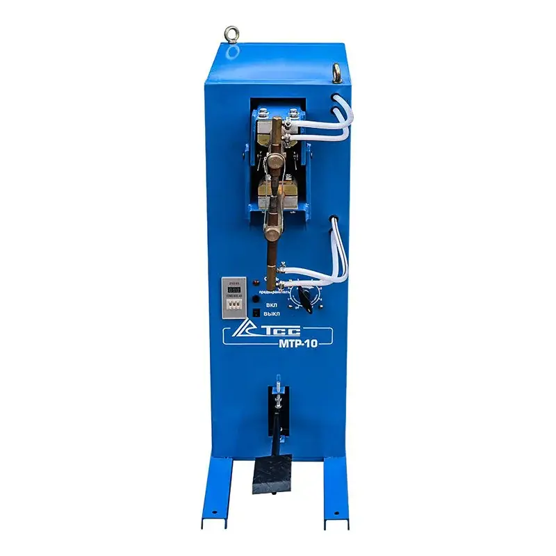 На корпусе аппарата точечной сварки ТСС МТР-10 размещены такелажные петли. Они нужны для крепления модели к грузоподъемному оборудованию. Например, во время первого размещения в рабочем помещении или при необходимости переустановки.