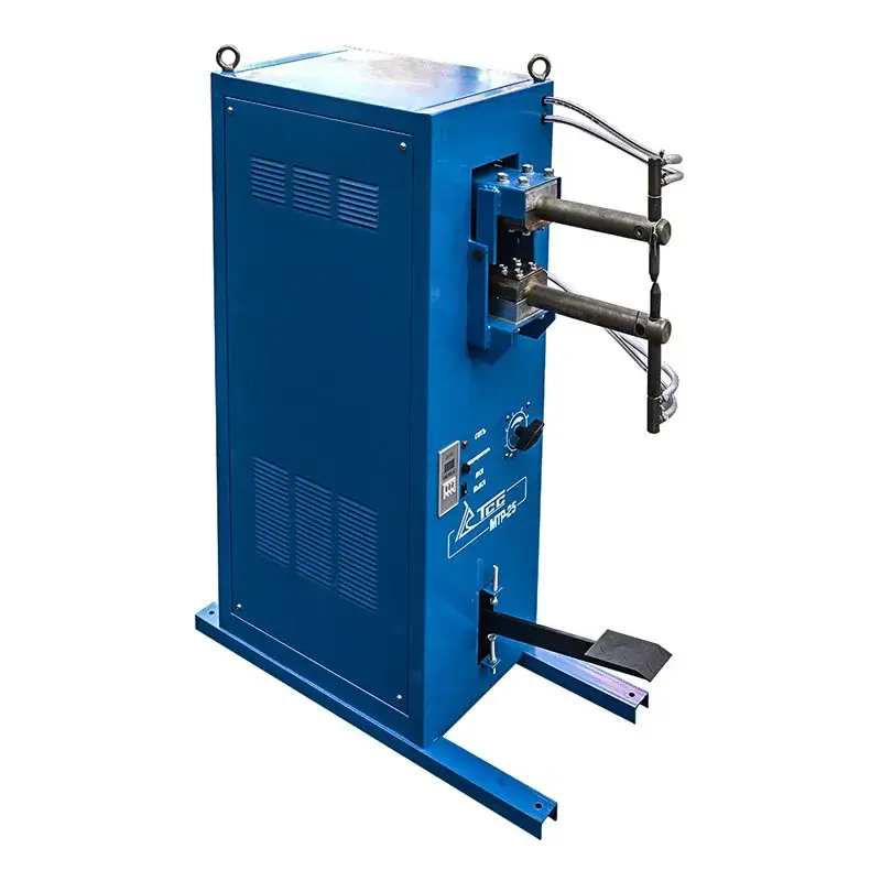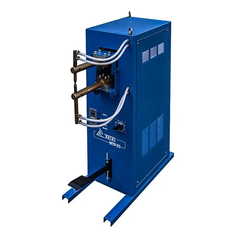 Машина контактной точечной сварки ТСС МТР-25 – стационарный аппарат номинальной мощностью 25 кВа, который используется для соединения металлических заготовок толщиной 0,3+0,3 – 1,5+1,5 мм. Модель проста в использовании, а потому вы легко справитесь с работой даже если не обладаете высоким уровнем квалификации.