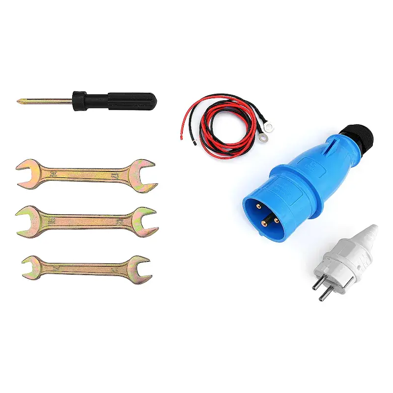 - Брызгозащищенные розетки безопасны, надежны, долговены. Две розетки, 220В/16А и 220В/32А, выход питания постоянного тока 12 В и клемма заземления.