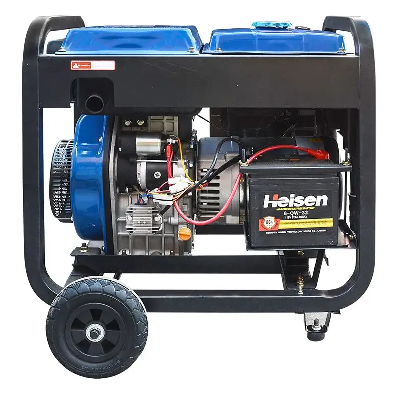 Дизельный генератор оснащен 4-тактным одноцилиндровым двигателем мощностью 16 л.с. с воздушным охлаждением. Мини электростанция вырабатывает однофазный переменный ток напряжением 230 В и частотой 50 Гц. Медная обмотка альтернатора отличается высокой проводимостью и прочностью, обеспечивает стабильность работы генератора. Электростартер облегчает запуск двигателя. Система предпускового подогрева позволяет использовать генератор при температуре от -20 градусов.