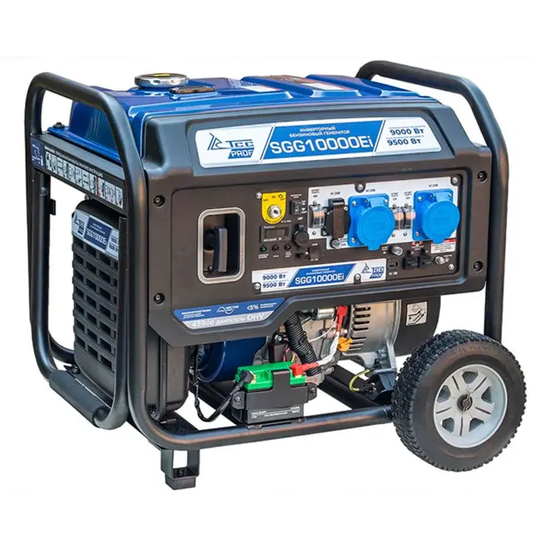 Мощность 4-тактного двигателя настраивается автоматически с учетом текущей нагрузки. Это позволяет экономить топливо при максимальной эффективности работы бензинового генератора ТСС SGG 10000Ei.