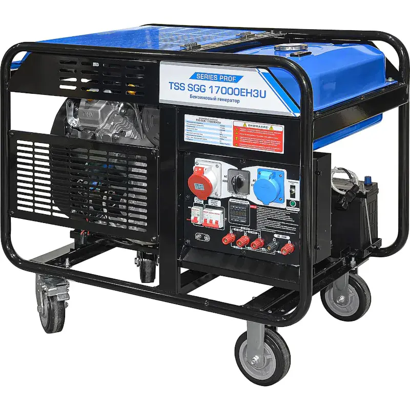 Время непрерывной работы при 75%-й нагрузке составляет 7 часов. На многофункциональном дисплее отображаются такие показатели, как напряжение, частота, сила тока и моточасы. Благодаря электростартеру и аккумуляторной батарее большой емкости 45 Ач бензиновый генератор ТСС заводится поворотом ключа в замке зажигания.