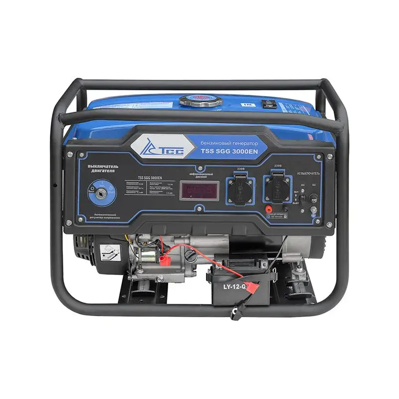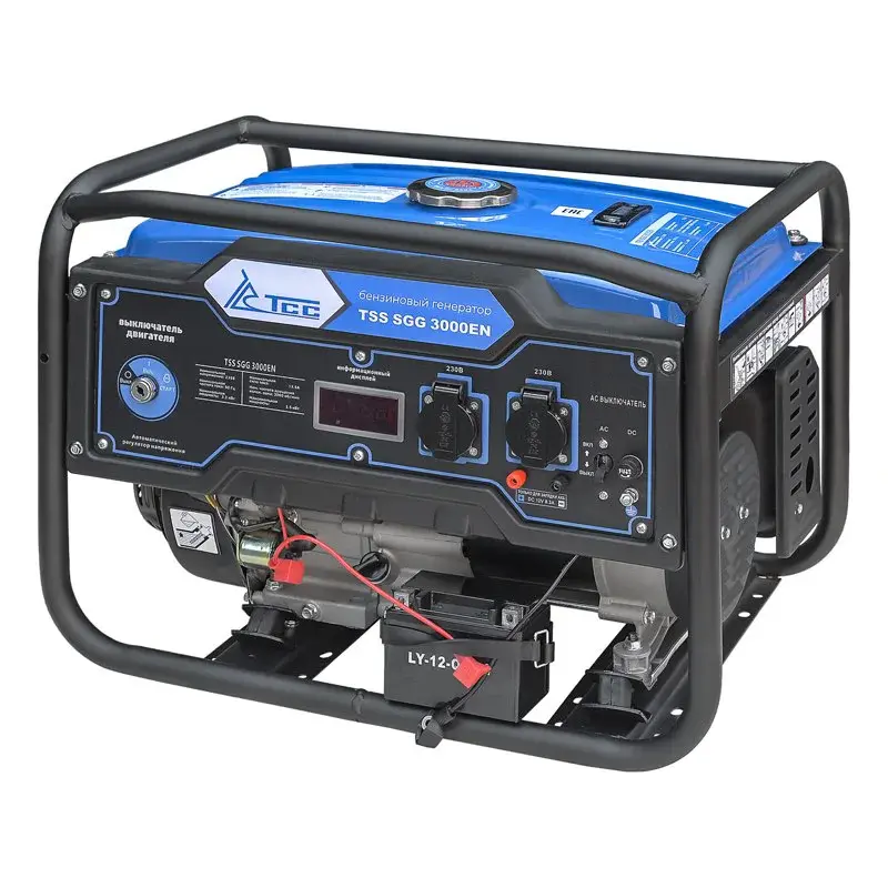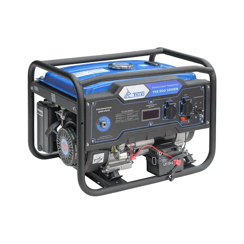 Бензогенератор TSS SGG 3000EN используется для питания бытовой техники или строительного инструмента мощностью до 3,2 кВт. Для простого и быстрого запуска мотора одним поворотом ключа предусмотрен электростартер.