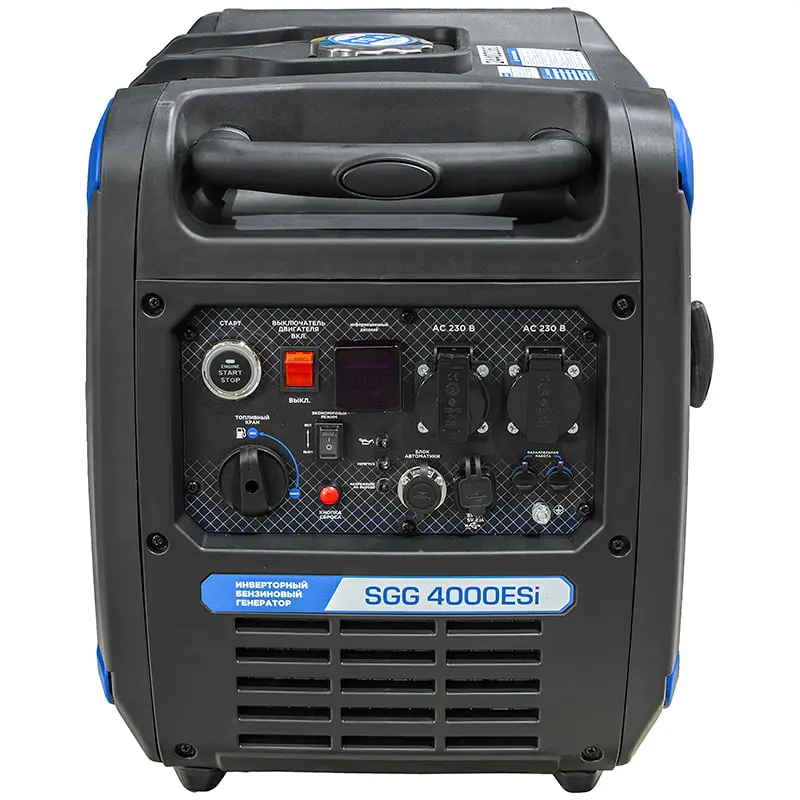 Бензогенератор оснащен 4-тактным двигателем мощностью 8,8 л.с., который легко заводится поворотом ключа в замке зажигания. Запаса бензина в баке объемом 15 л хватает на продолжительную работу. Нагрузка подключается к двум бытовым розеткам 230 В и USB-портам. Индикаторы информируют о нормальной работе, недостаточном уровне моторного масла и перегрузке. Рабочие характеристики, такие как ток, напряжение, частота и моточасы, отображаются на дисплее.