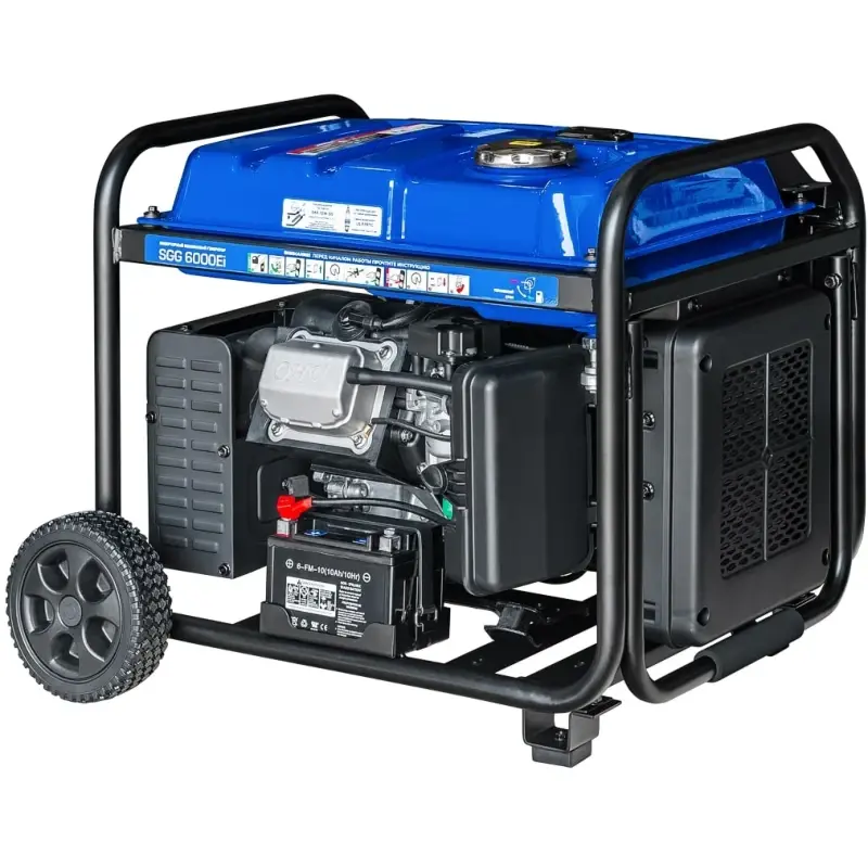Бензогенератор инверторный SGG 6000Ei с электростартом, коннектором для подключения блока АВР(блок автоматического запуска генератора), укомплектован колесным комплектом для удобства перемещения. Бензиновый генератор предназначен для подключения к нему потребителей тока общей максимальной мощностью до 6,5 кВт. Позволяет напрямую подключать к генератору как обычных потребителей, так и точное электронное оборудование, например, ноутбуки, LCD-телевизоры или смартфон.