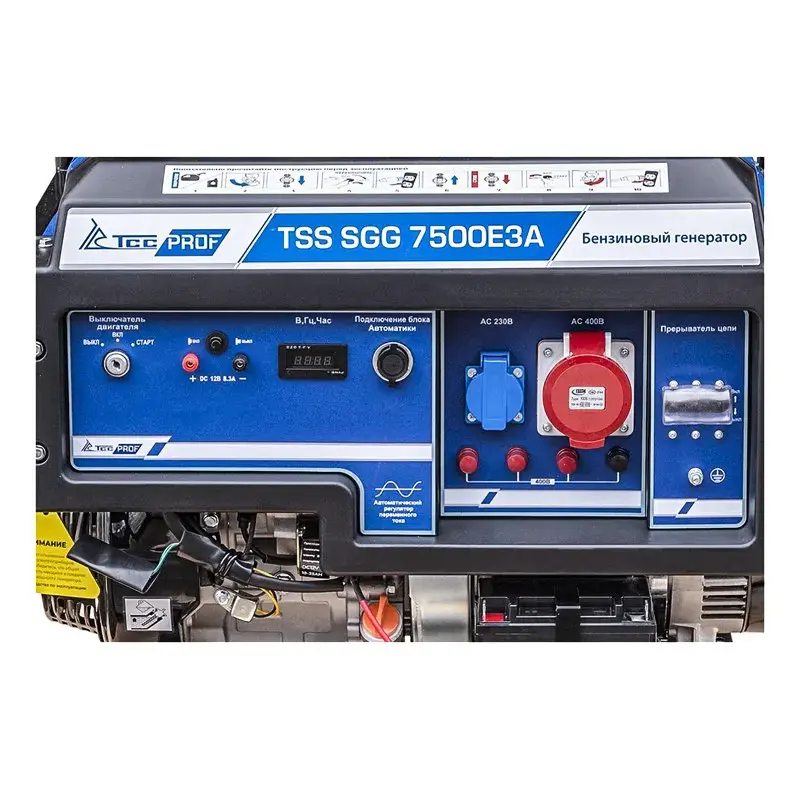 Бензогенератор TSS SGG 7500Е3A используется для питания однофазных потребителей мощностью до 2,5 кВт и трехфазных потребителей суммарной мощностью 7,5 кВт. Модель оснащена электростартером для быстрого запуска двигателя, глушителем, разъемом для подключения блока автозапуска, а также регулятором напряжения.