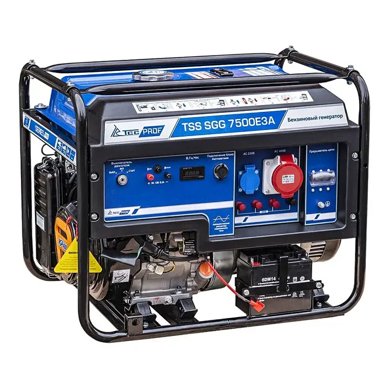 Бензогенератор TSS SGG 7500Е3A используется для питания однофазных потребителей мощностью до 2,5 кВт и трехфазных потребителей суммарной мощностью 7,5 кВт. Модель оснащена электростартером для быстрого запуска двигателя, глушителем, разъемом для подключения блока автозапуска, а также регулятором напряжения.