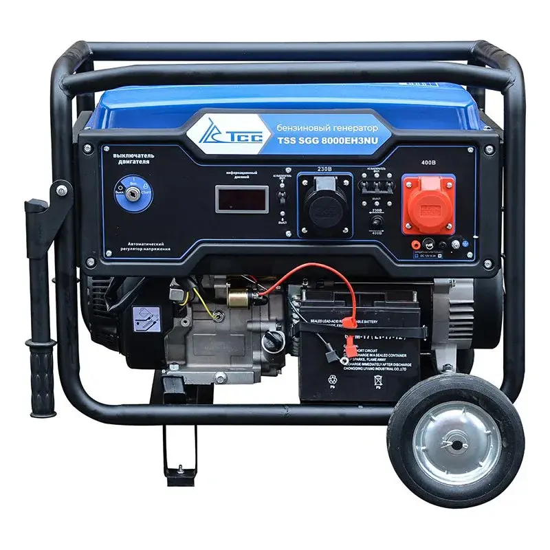Бензогенератор TSS SGG 8000EH3NU подходит для питания как однофазных, так и трехфазных потребителей общей мощностью до 7,8 кВт. Для комфортного использования модели есть электростартер и цифровой дисплей, а для качественной работы автоматический регулятор напряжения.