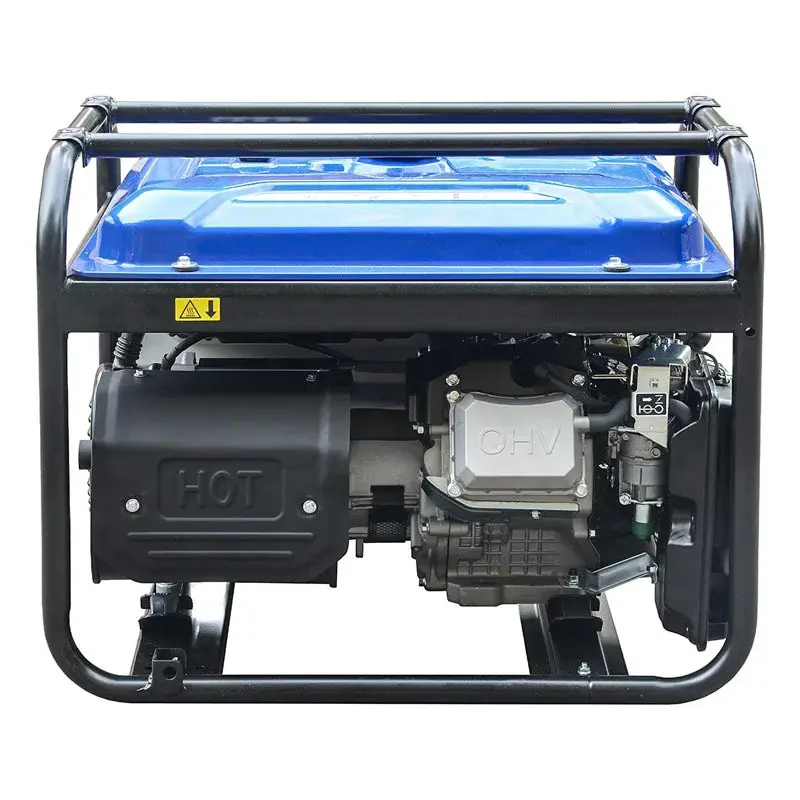 Двигатель бензинового электрогенератора выполнен с верхним расположением клапанов OHV. Такая конструкция обеспечивает эффективное сгорание топлива, сниженный уровень шума и гарантирует повышенный ресурс работы клапанов. Для предотвращения перегрева мотора предусмотрена система охлаждения, понижающая температуру до 20 °C.