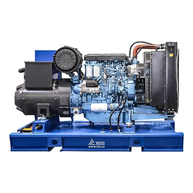 Промышленный дизельный генератор ТСС TBd 83TS номинальной мощностью 60 кВт служит в качестве автономного источника однофазного и трехфазного тока для питания производственных предприятий, строительных площадок, торговых комплексов, поселков, больниц и других промышленных и социальных объектов, где жизненно необходимо бесперебойное электроснабжение. Генераторная установка оснащена двигателем компании Baudouin номинальной мощностью 74 кВт с жидкостным охлаждением, который адаптирован под российское дизельное топливо и суровые климатические условия. Электростанция имеет открытый тип кожуха и рассчитана на длительную работу без дозаправки благодаря топливному баку объемом 150 литров.