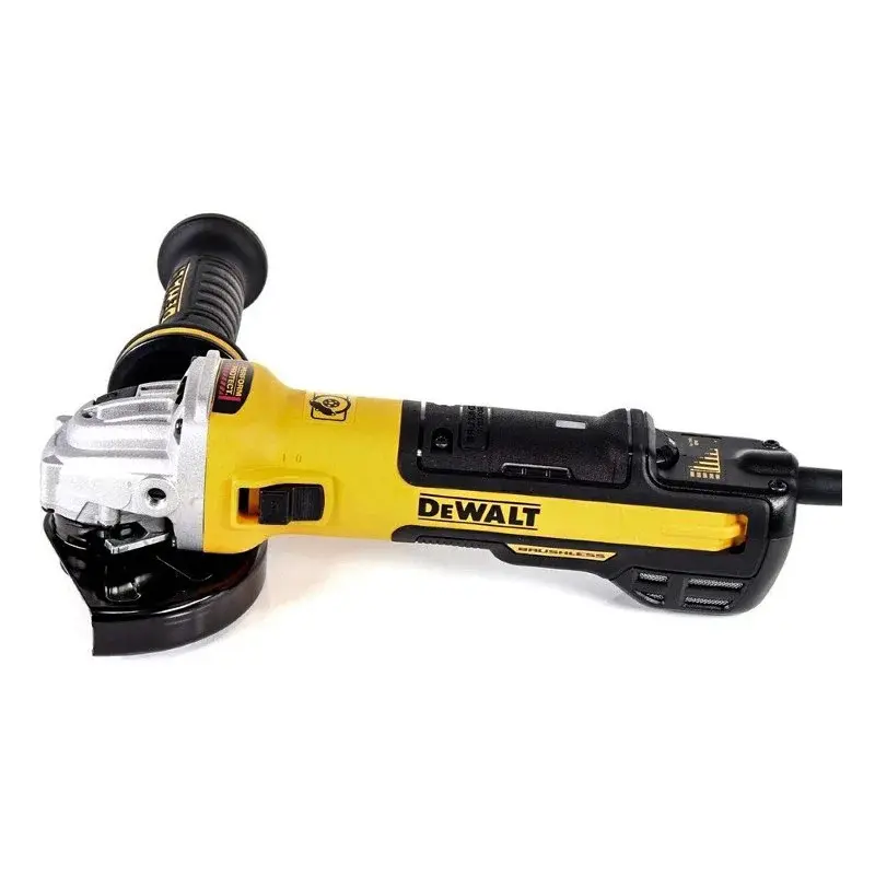 Универсальная болгарка (УШМ) DeWalt DWE 4369 работает от сети, но при этом имеет бесщеточный двигатель. Это инновационная модель, которую отсутствие щеток сделало более эффективной, долговечной, компактной и безопасной. Одна из особенностей модели – короткий выбег, т.е. вращение двигателя по инерции почти отсутствует. Электронный блок обеспечивает защиту от повторного запуска, перегрузки и обратного удара, Болгарка оснащена муфтой E-Clutch, бесключевыми поворотным кожухом и зажимной гайкой, регулятором скорости вращения. Нескользящая рукоятка устанавливается и справа, и слева. Внутренние элементы надежно защищены от попадания пыли. Световой индикатор сообщает о состоянии инструмента.