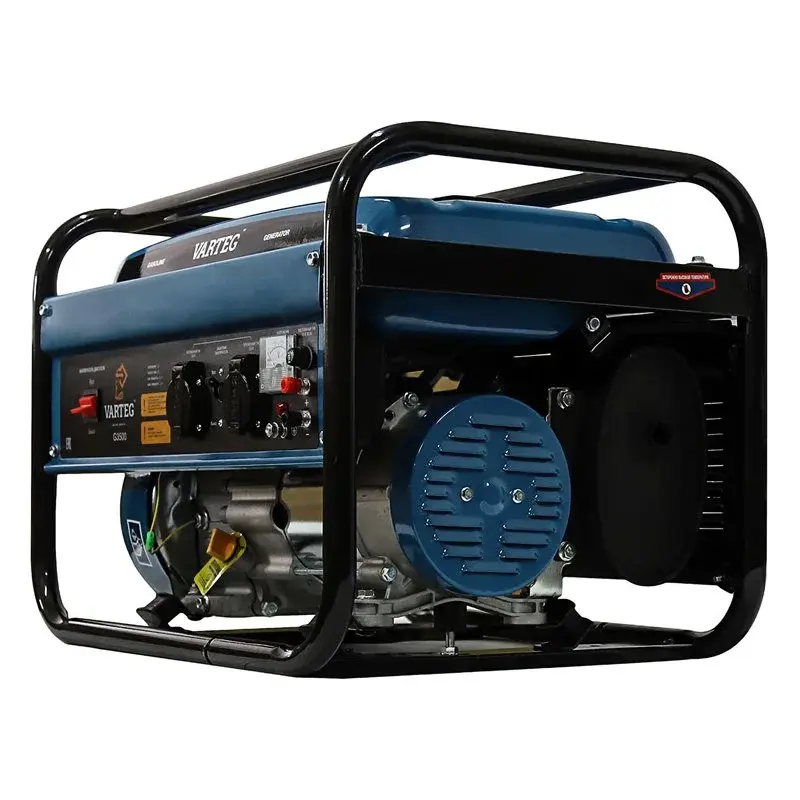 Бензиновый генератор Varteg G3500 - простой в применении резервный источник электричества на силовой раме классической компоновки для стационарного использования. Предназначен для обеспечения резервным электричеством нетребовательных к пусковым токам приборов. Может обеспечить светом и электричеством небольшой загородный дом во время его отключения от основной электросети.