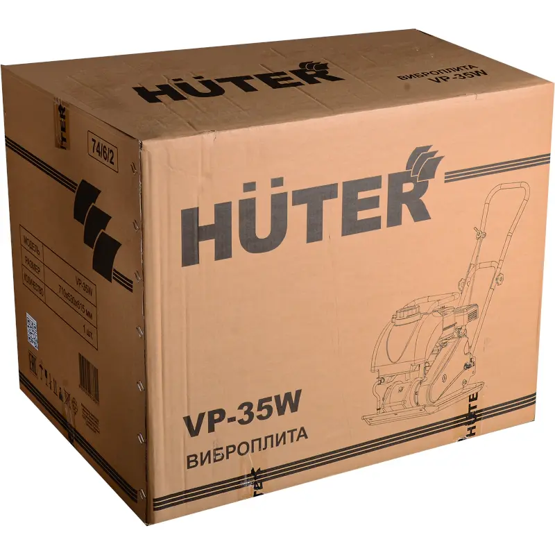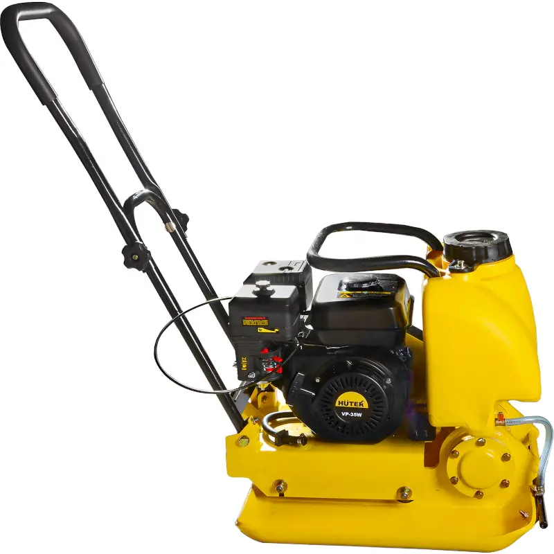 Виброплита Huter VP-35W мощностью 6,5 л.с. подходит для обработки песка, гравия, брусчатки на глубину до 35 см. Центробежная сила составляет 25 кН, что обеспечивает быстрое и качественное уплотнение.