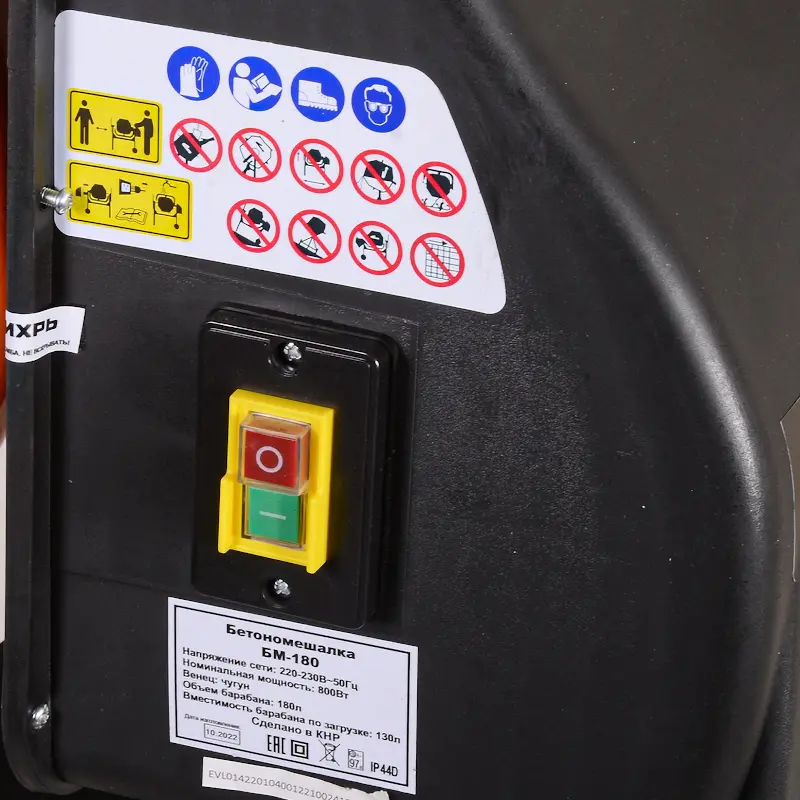- Яркий цвет бетономешалки соответствует правилами СНИПа, который предписывают окрашивание потенциально опасной техники в яркие цвета.
