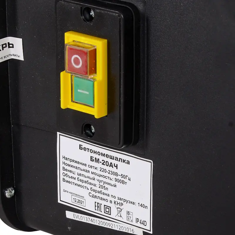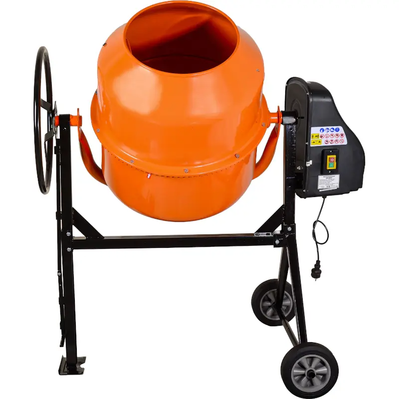 - Хорошие параметры для строительства дома: объем барабана 205 литров, мощность 900 Вт, вместимость барабана по загрузке 140 литров.