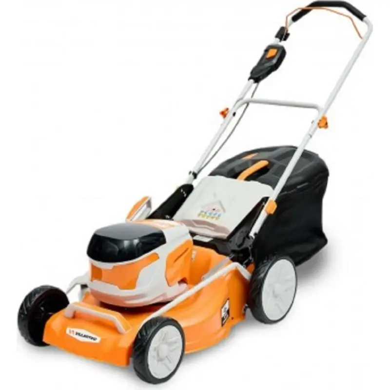 В комплекте с газонокосилкой есть насадка для работы в режиме мульчирования. При этом скошенная трава мелко измельчается режущим ножом и остается на газоне. Это позволяет обогатить почву питательными веществами для дальнейшего роста газонной травы и увлажнить ее. Пластиковые детали устойчивы к ультрафиолетовому излучению, сохраняют пластичность на протяжении всего срока службы, не выцветают и приятны на ощупь. Они также не содержат токсичных веществ. Крепкие колеса большого диаметра на подшипниках обеспечивают плавность, легкость и надежность хода. Надежный и легкий складной травосборник объемом 55 литров удобен для опустошения и просто устанавливается или снимается. Для удобства хранения рукоятку можно сложить, что позволяет уменьшить габаритные размеры газонокосилки.