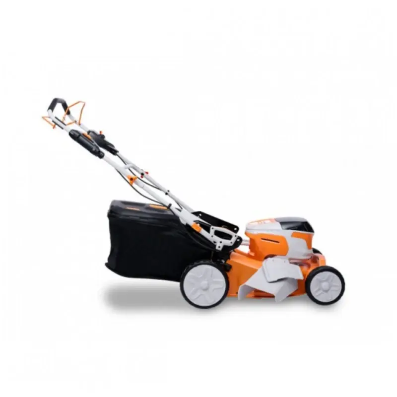 В комплекте с газонокосилкой есть насадка для работы в режиме мульчирования. Скошенная трава измельчается режущим ножом и остается на газоне. Это способствует обогащению почвы питательными веществами. Пластиковые детали устойчивы к ультрафиолетовому излучению, сохраняют пластичность на протяжении всего срока службы, не выцветают и приятны на ощупь. Они также не содержат токсичных веществ. Колеса большого диаметра на подшипниках обеспечивают плавность, легкость и надежность хода. Надежный и легкий складной травосборник объемом 55 литров удобен для опустошения и легко устанавливается или снимается. Для удобства хранения рукоятку можно сложить, что помогает уменьшить габаритные размеры газонокосилки.