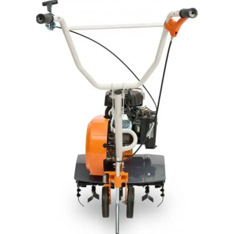 Органы управления расположены на рукоятке, которая складывается для удобства транспортировки и хранения. Кожух увеличенного размера, закрывающий приводной механизм ремней, защищает от попадания земли при работе.