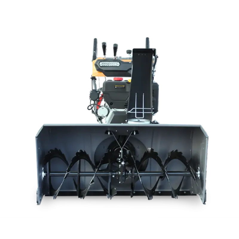 Агрессивный стальной шнек справится с любым снегом и наледью, а срезные болты защитят редуктор от повреждения. Ковш изготовлен из высокопрочной стали толщиной 2 мм усиленный ребрами жесткости выдерживает огромную нагрузку. Большой диаметр импеллера существенно увеличивает производительность снегоуборщика.
