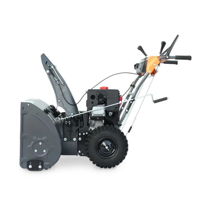 Самоходный бензиновый снегоуборщик удобен в работе — вам нужно только выбрать подходящий темп передвижения. Для этого предусмотрено 6 передних передач и две скорости для движения назад. Задний ход помогает вытащить снегоуборщик из сугроба, значительно упрощает парковку и повышает маневренность машины.