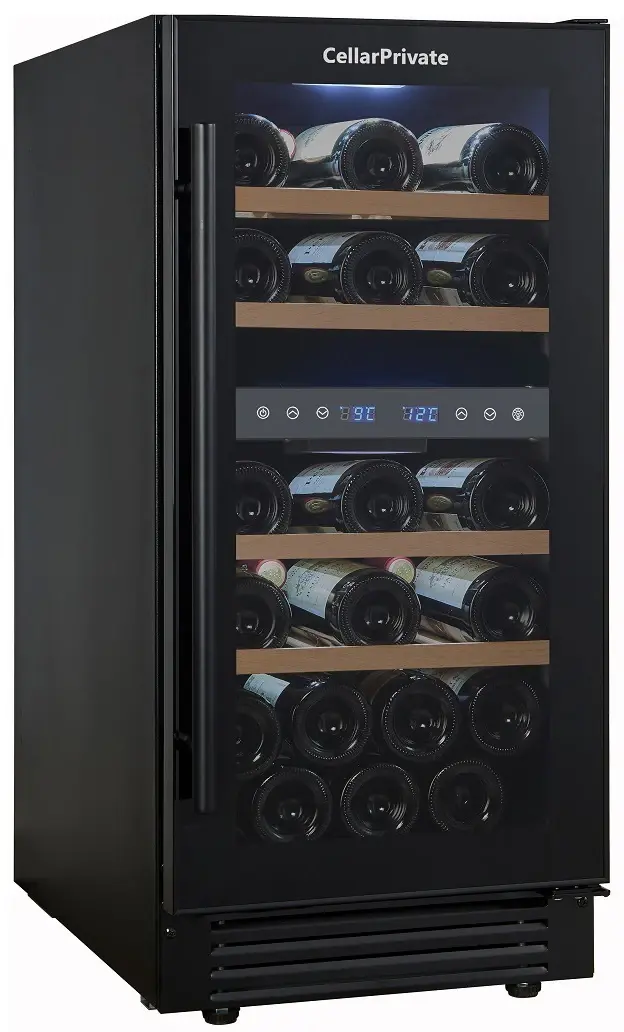 Винный шкаф двухзонный Cellar Private CP027-2TB вместимостью до 27 бутылок предназначен для хранения при оптимальных условиях бутилированного вина различных сортов в барах, ресторанах, специализированных магазинах, подсобных складских помещениях, а также в домашних условиях.
