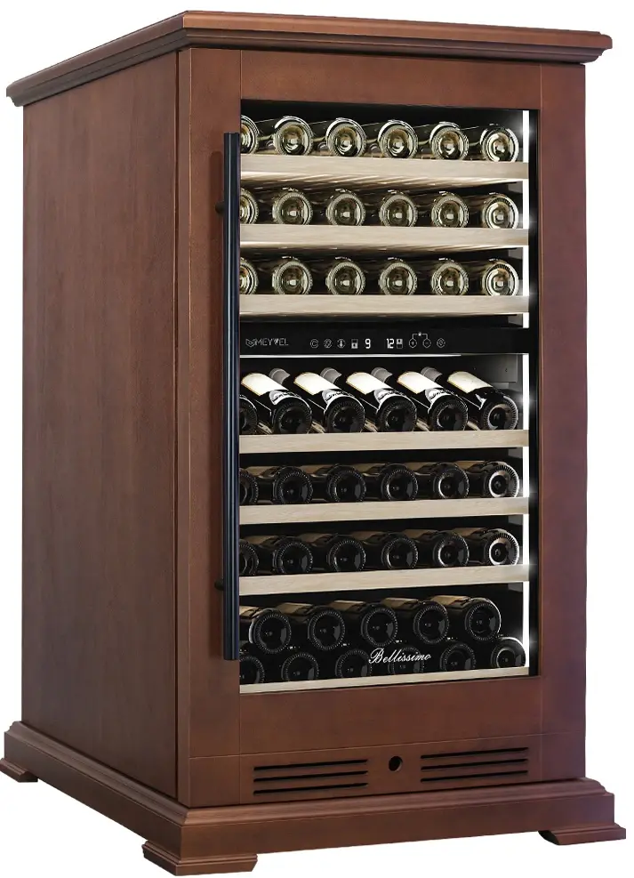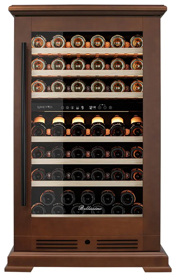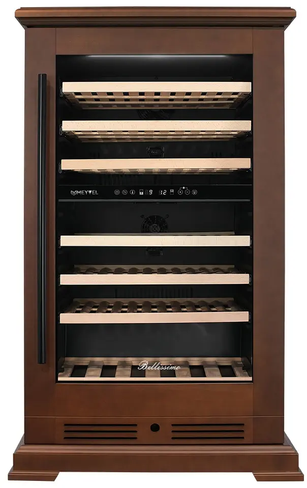 Винный шкаф двухзонный Meyvel MV77PRO-KBT2 (Итальянский орех) имеет привлекательный внешний вид, сочетающий в себе неподвластное времени очарование натурального дерева с высокотехнологичными системами.