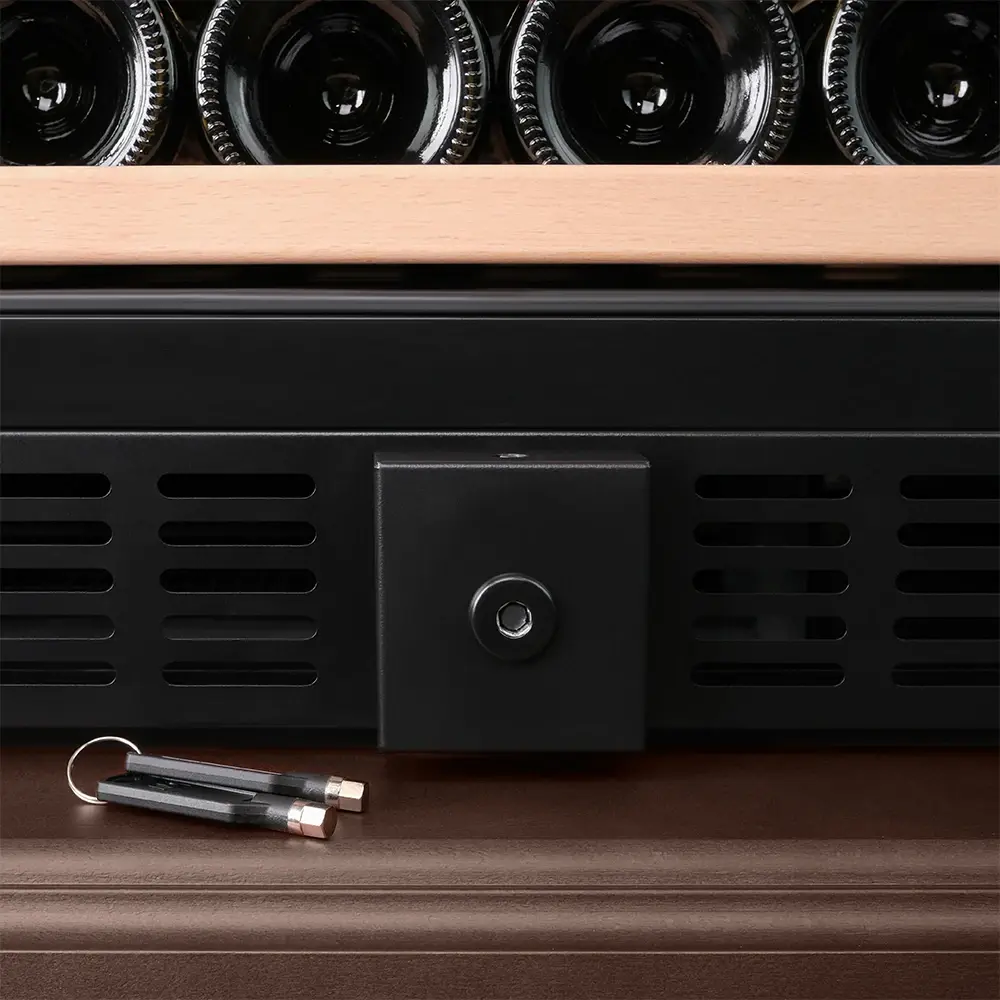 Винный холодильник оснащен дверью с защитой от ультрафиолетовых лучей и отлично подойдет для хранения и созревания различных сортов вин. Динамическая система охлаждения обеспечивает оптимальную температуру для вина и сохраняет необходимую влажность внутри камеры.