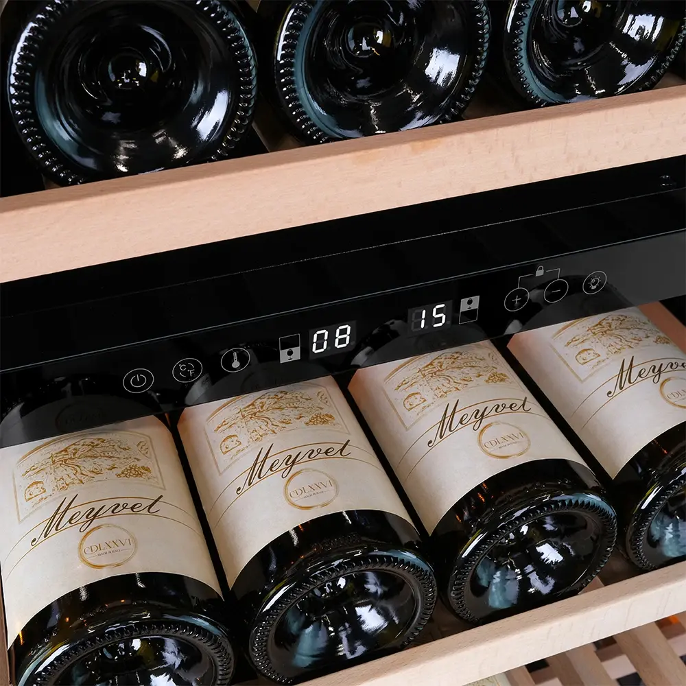 Управляйте всеми функциями винного шкафа с помощью интуитивно-понятной сенсорной панели управления. Для вашего удобства на панели есть обозначение нижней и верхней зоны.