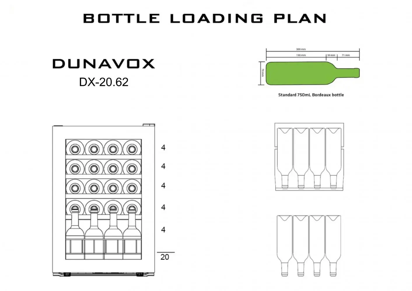 Удобное и понятное сенсорное управление, исключает вероятность случайного нажатия. Винный шкаф DX-20.62KF – современное решение в вопросе хранения вин.