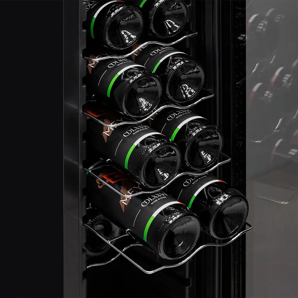 Винный холодильник оснащен дверью с защитой от ультрафиолетовых лучей и отлично подойдет для хранения и созревания различных сортов вин. В модели установлен надёжный и экономичный компрессор с уровнем шума до 45 дБ. Гарантирует надёжную работу с низким уровнем шума.