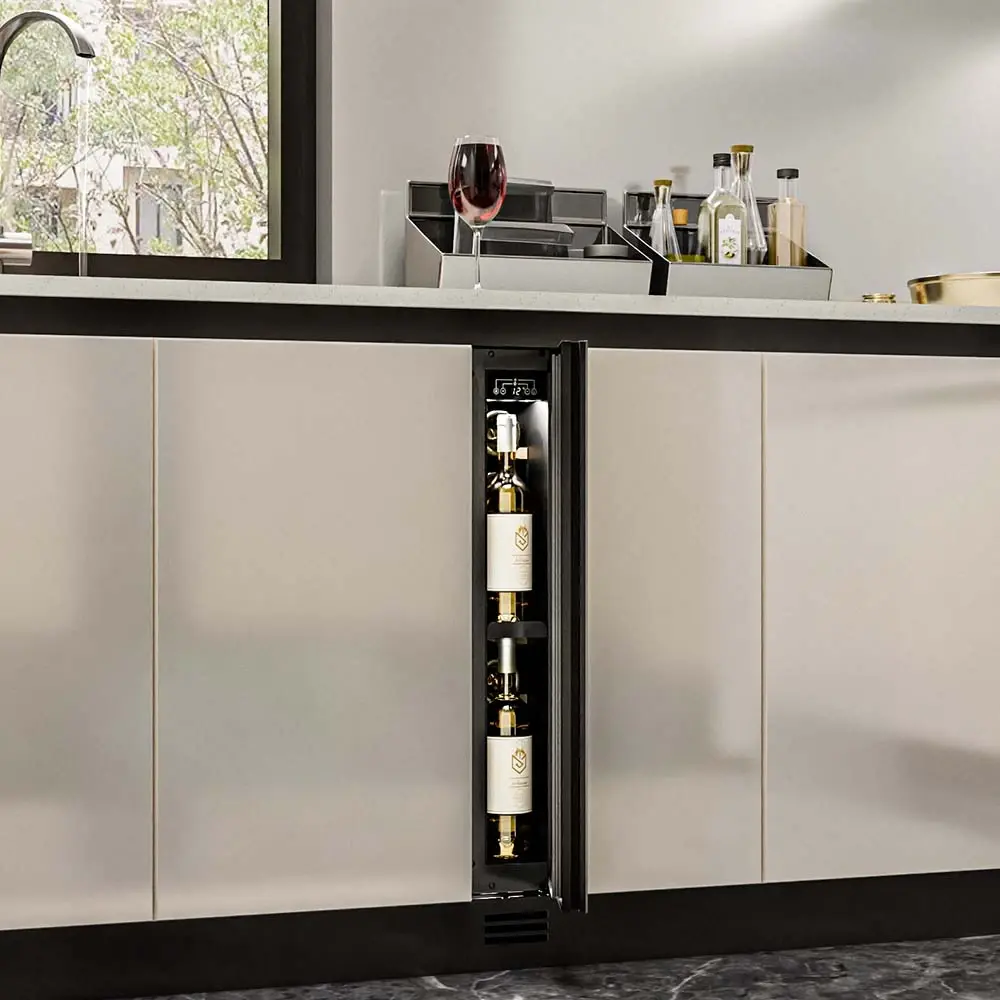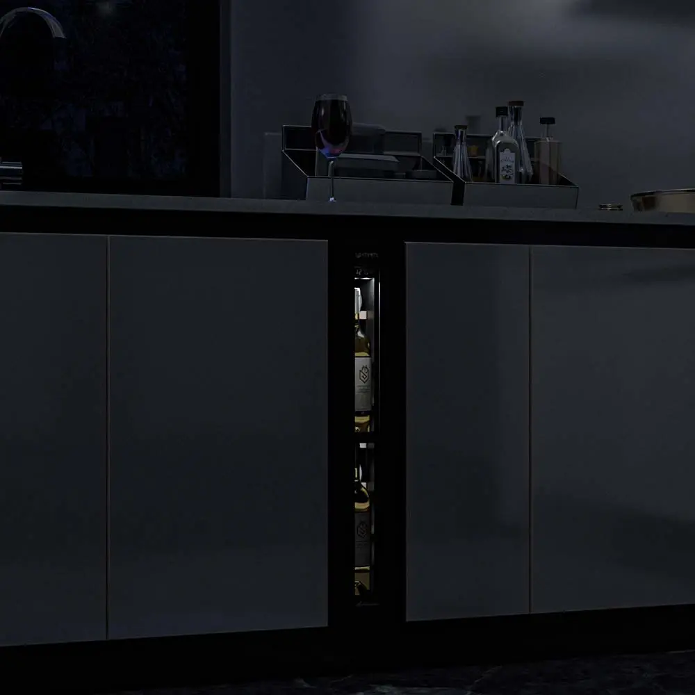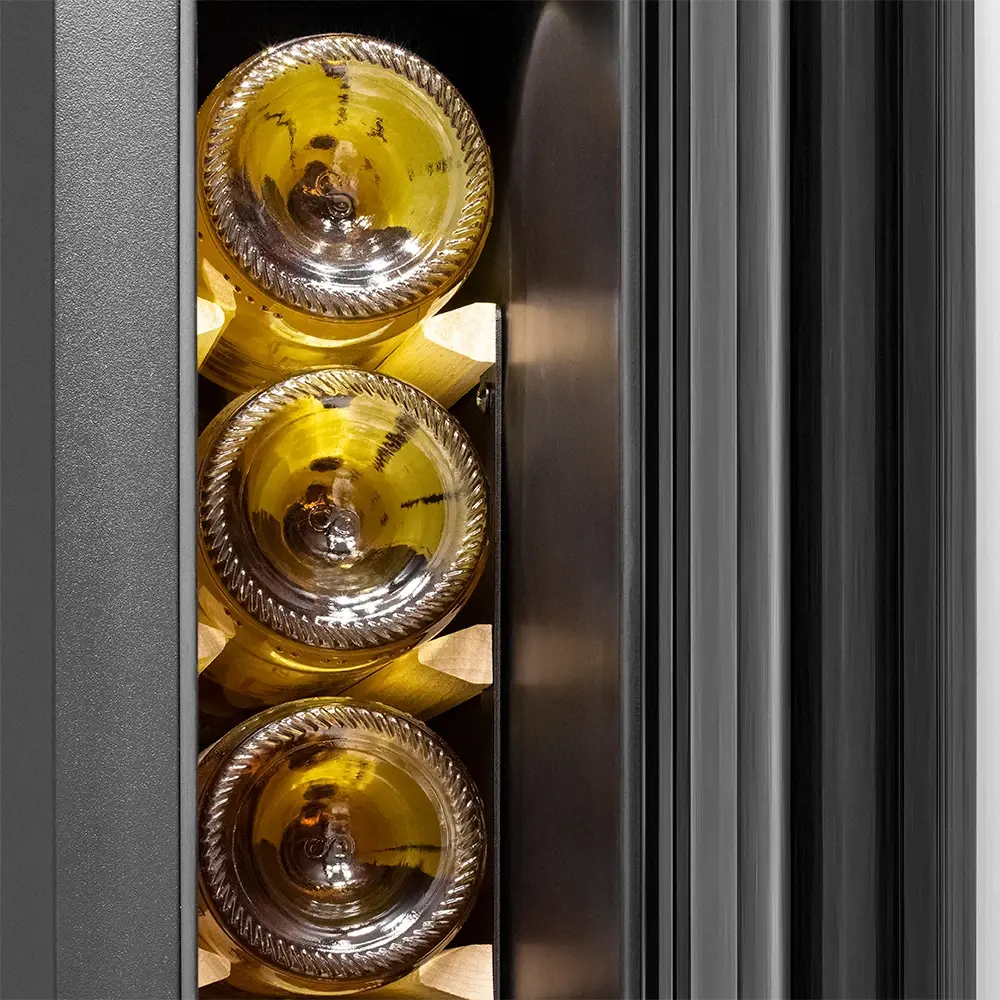 Несмотря на небольшой размер, обладает большой вместимостью и дает возможность разместить до 9 бутылок. Располагаются они на держателях из массива бука. Внутреннее пространство шкафа поддерживает комфортную для вина температуру от +5_ до +20_ и имеет самую большую вместимость среди аналогичных винных шкафов. Преимуществом этой модели является возможность разместить внутри одну высокую бутылку. Так же, данная модель поддерживает влажность в диапазоне 60-80%, как в настоящем винном погребе.