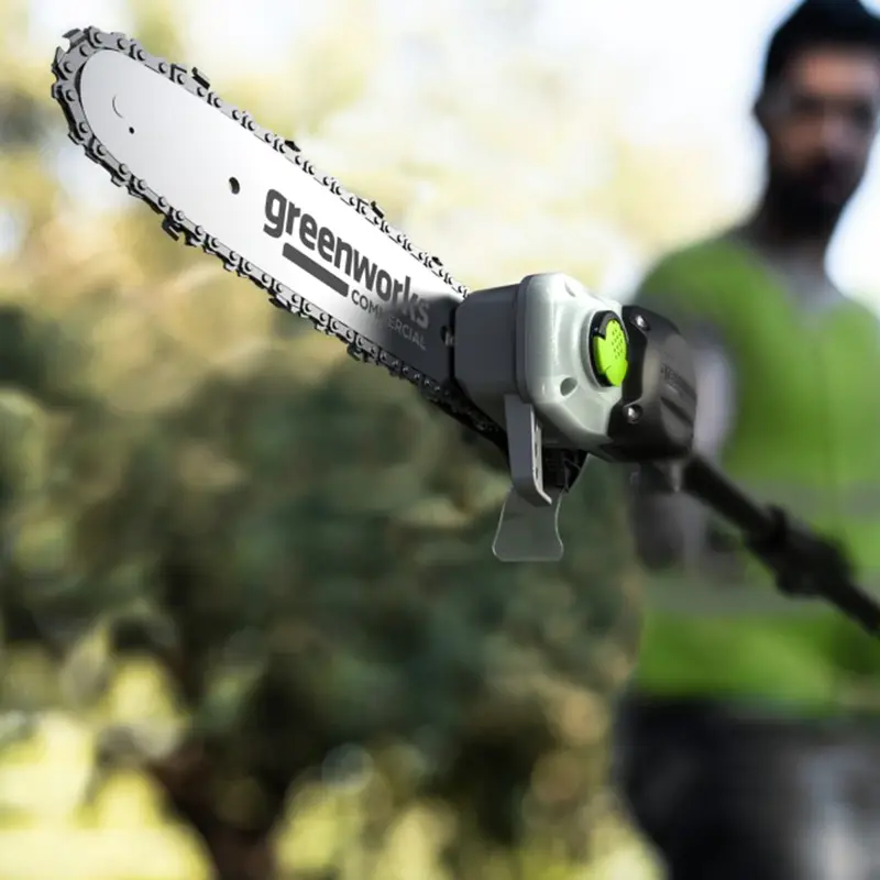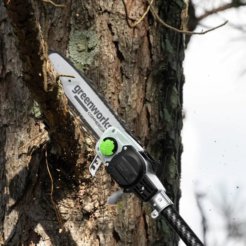 Конструкция высотореза Greenworks PS102T разработана для удобства и эффективности: телескопическая алюминиевая штанга прочная и легкая, бесщеточный двигатель не нуждается в обслуживании. Пильное полотно из высококачественной стали долго сохраняет заточку, а защитный кожух предотвращает случайные повреждения. Отсутствие АКБ и ЗУ в комплекте делает модель более доступной и позволяет выбрать подходящий аккумулятор из существующего парка Greenworks.