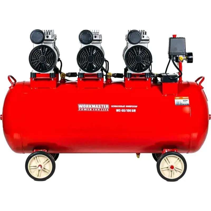 Воздушный компрессор WorkMaster WC-60/100БМ используется для производства сжатого воздуха в большом объеме. Конструкция включает в себя ресивер. Это позволяет воспользоваться запасом сжатого воздуха и избежать кратковременных включений двигателя.