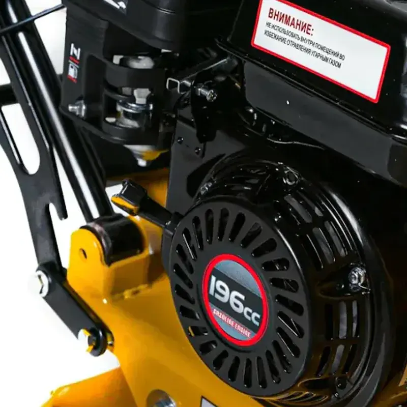 Агрегат оснащен бензиновым двигателем Loncin мощностью 6.5 л.с., складными ручками и транспортными колесами, что значительно упрощает транспортировку устройства, а также системой орошения, которая предотвратит прилипание основания виброплиты к горячему асфальту.