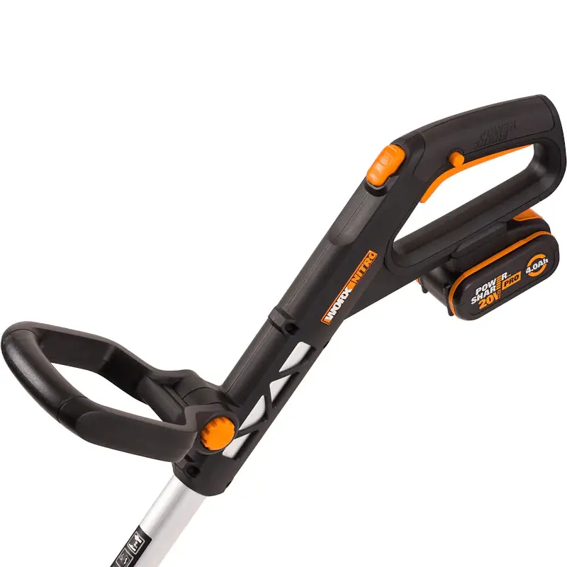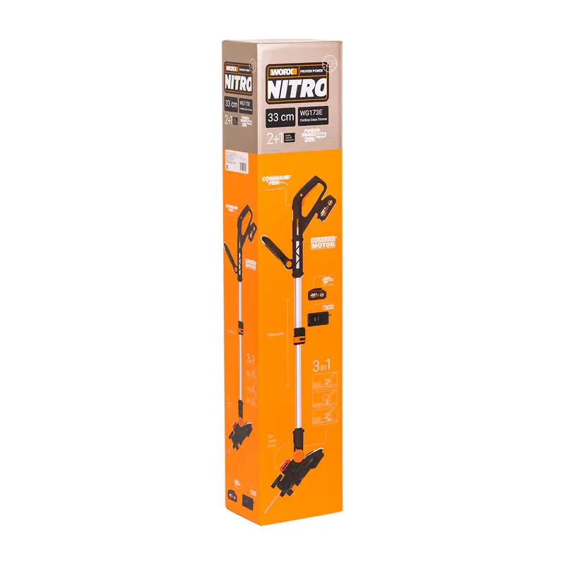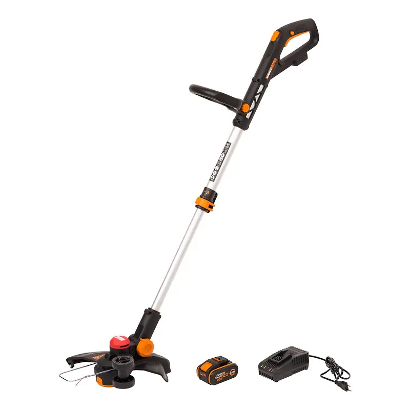 Триммер WORX WG173E оснащен бесщеточным двигателем, который работает тихо и не требует обслуживания. В комплект входит съемный аккумулятор 20 В, совместимый с другой техникой WORX – вы можете использовать его с дрелью, УШМ, гайковертом или прочими инструментами. Батарея защищена от перегрева и глубокого разряда, что продлевает срок ее службы.