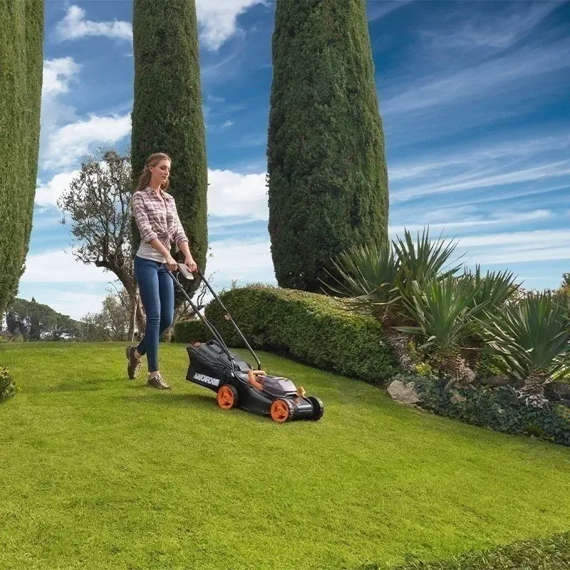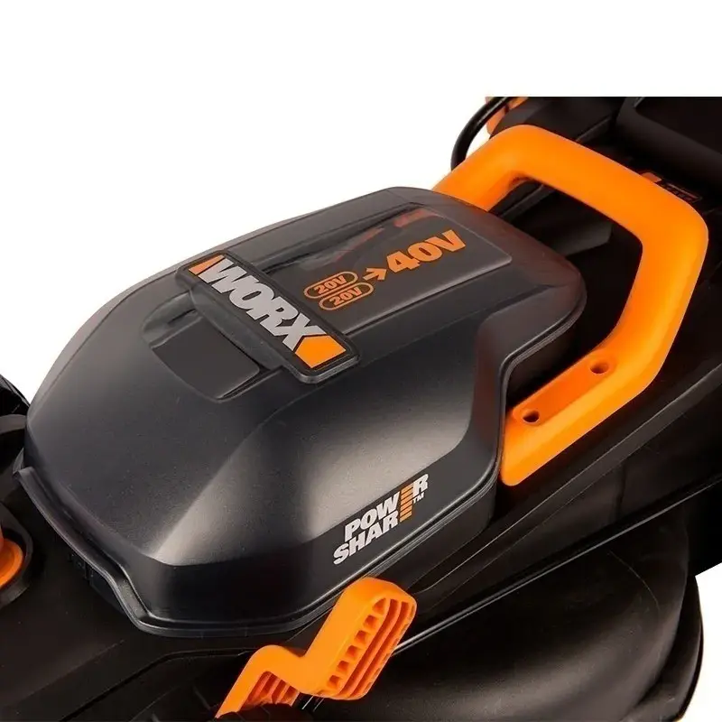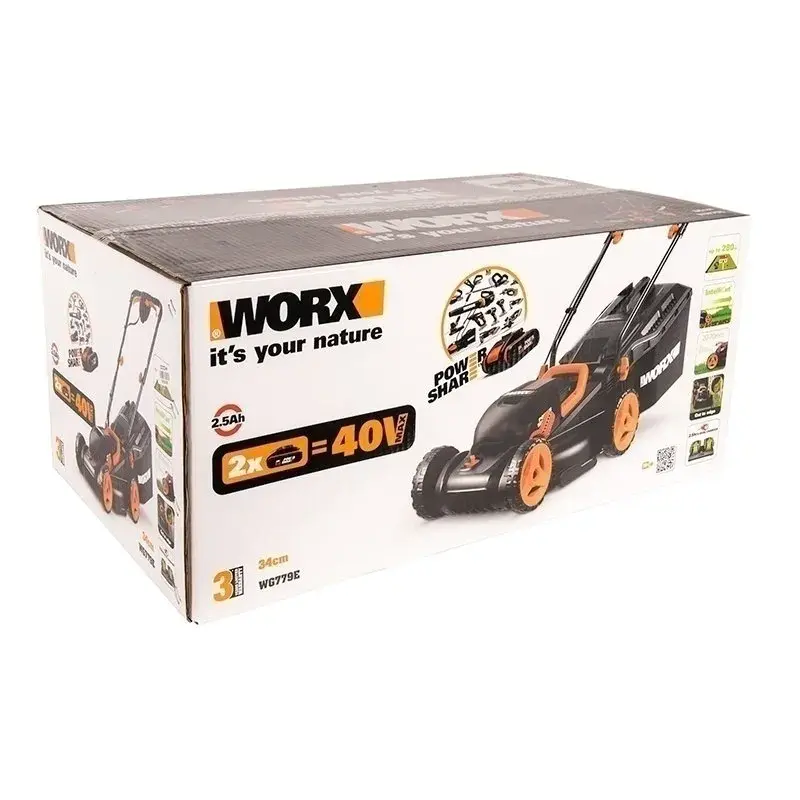 Аккумуляторная газонокосилка WORX WG779E позволяет без подзарядки скосить газонную траву на площади до 280 м2. Работает от двух Li-Ion аккумуляторных батарей 20 В емкостью 2,5 Ач, которые входят в комплект поставки вместе с зарядным устройством. Технология IntelliCut автоматически регулирует обороты в зависимости от нагрузки. Травосборник объемом 30 л оснащен индикатором наполнения. Ширина кошения составляет 34 см.