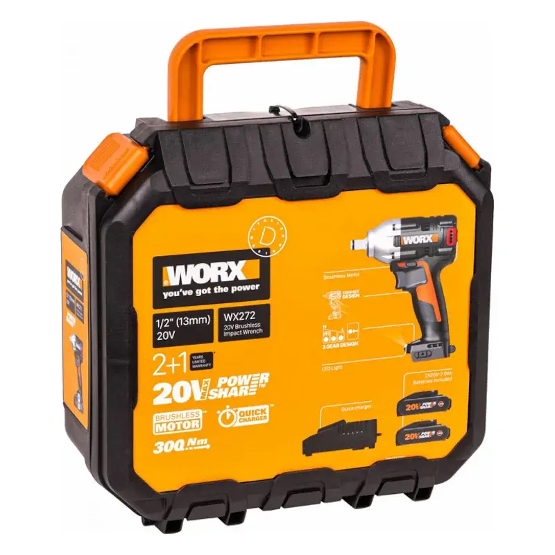 Аккумуляторный бесщеточный гайковерт WORX WX272 подходит для самостоятельной замены колесных дисков, а также проведения строительных или бытовых работ.