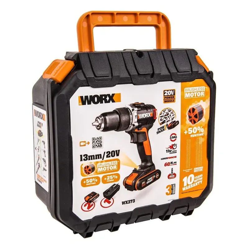Аккумуляторная дрель-шуруповерт Worx WX373 оснащена бесщеточным двигателем с 2-скоростным редуктором. Технологии позволяют использовать инструмент для быстрого заворачивания саморезов и сверления отверстий в дереве и металле. В комплекте поставляются 2 аккумулятора.