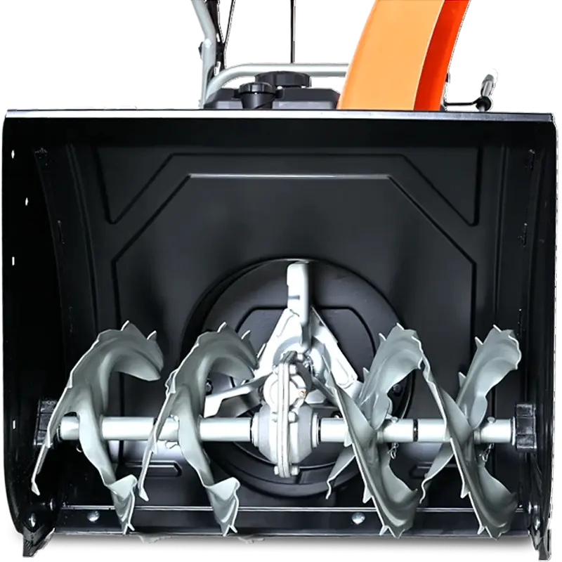 В целях безопасности в желобе установлен снежный рассекатель, задерживающий вылет кусков льда. Засоры и наледи в механизме можно удалять с помощью лопатки, которая прикреплена к рулевой рукоятке и всегда находится под рукой.