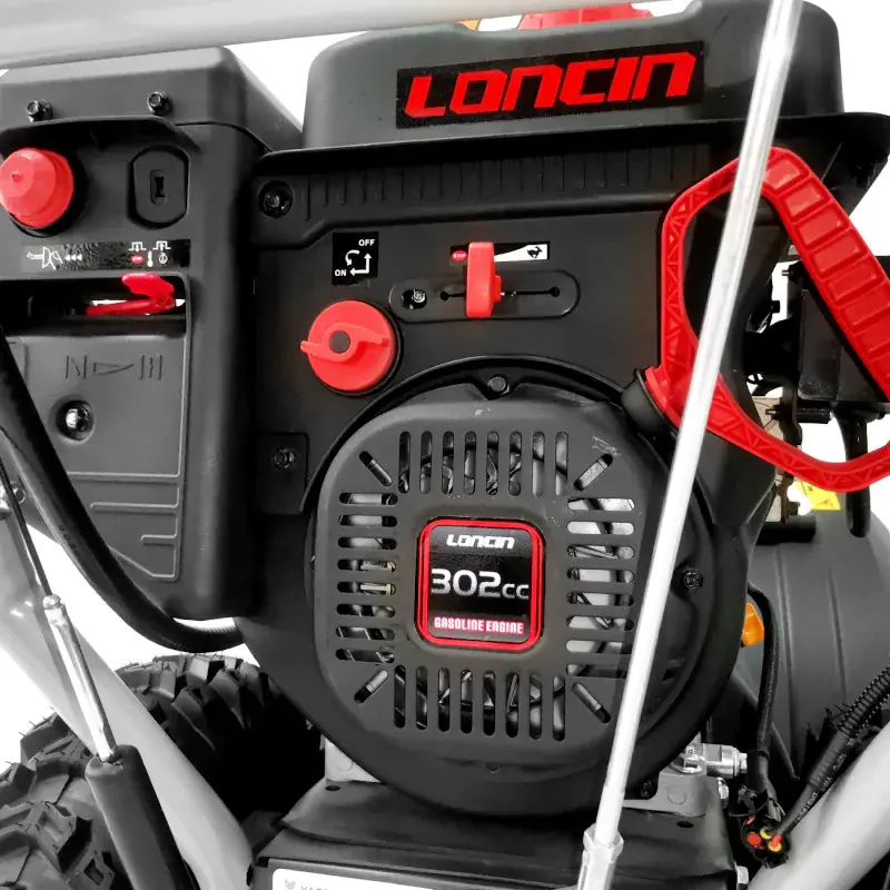 Бензиновый снегоуборщик с надежным двигателем Loncin LC180FDS объемом 302 см3, а также ручным и электрическим стартером готов к работе в любую погоду. Благодаря большому ковшу высотой 54 см снегоочиститель легко справляется даже с высокими сугробами. Ширина кожуха 71 см позволяет убирать обширные территории за небольшое число проходов.