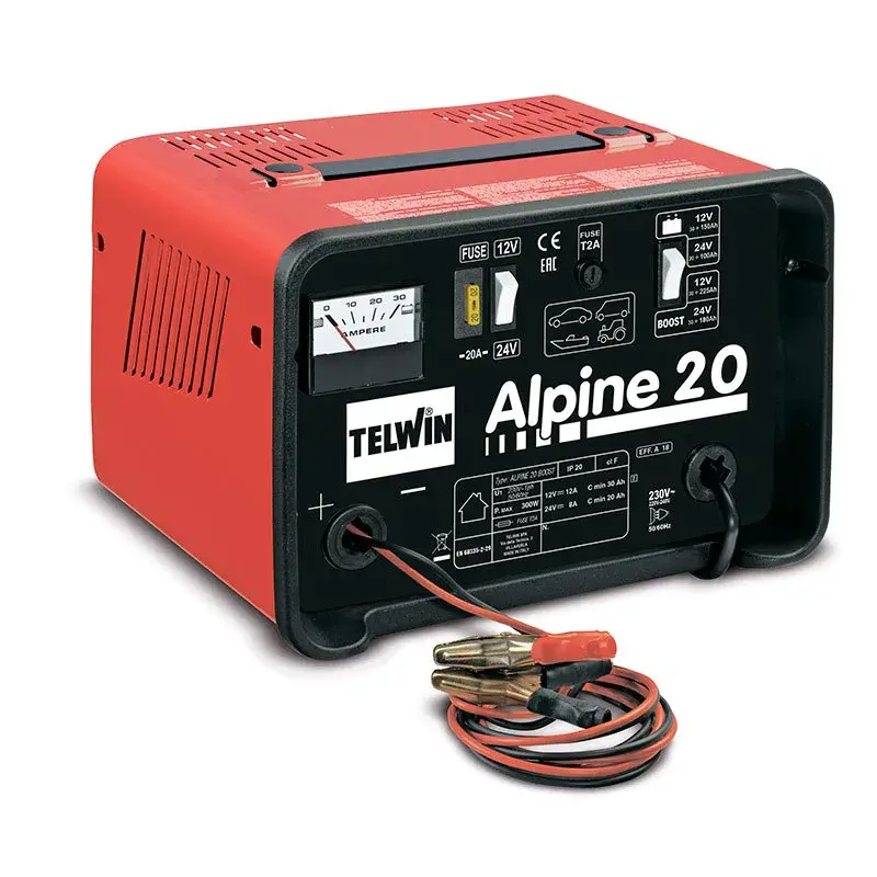 Зарядное устройство аккумуляторов Telwin ALPINE 20 BOOST 12-24V для зарядки аккумуляторов со свободным электролитом (WET) с напряжением 12/24В, с защитой от перегрузок и измененной полярности.