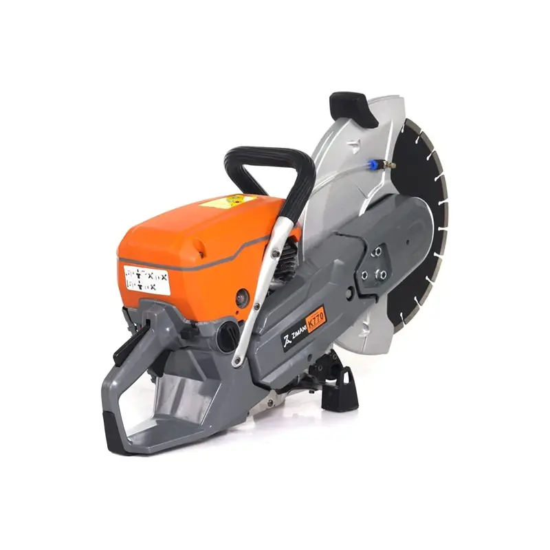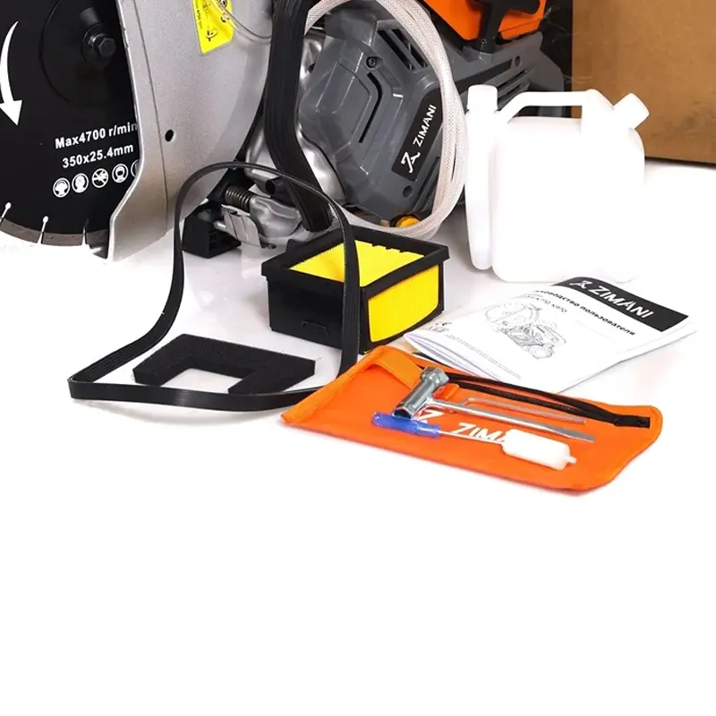 Другие важные компоненты бензореза - это пылезащищенный стартер, который повышает надежность и срок службы продукта, декомпрессионный клапан для облегчения запуска бензореза. ZimAni K770 - идеальный инструмент для резки бетона и камня при реконструкции, обновлении и строительстве зданий. Он также идеально подходит для создания небольших отверстий и подгонки оконных и дверных проемов и резки труб, асфальта и металлов.