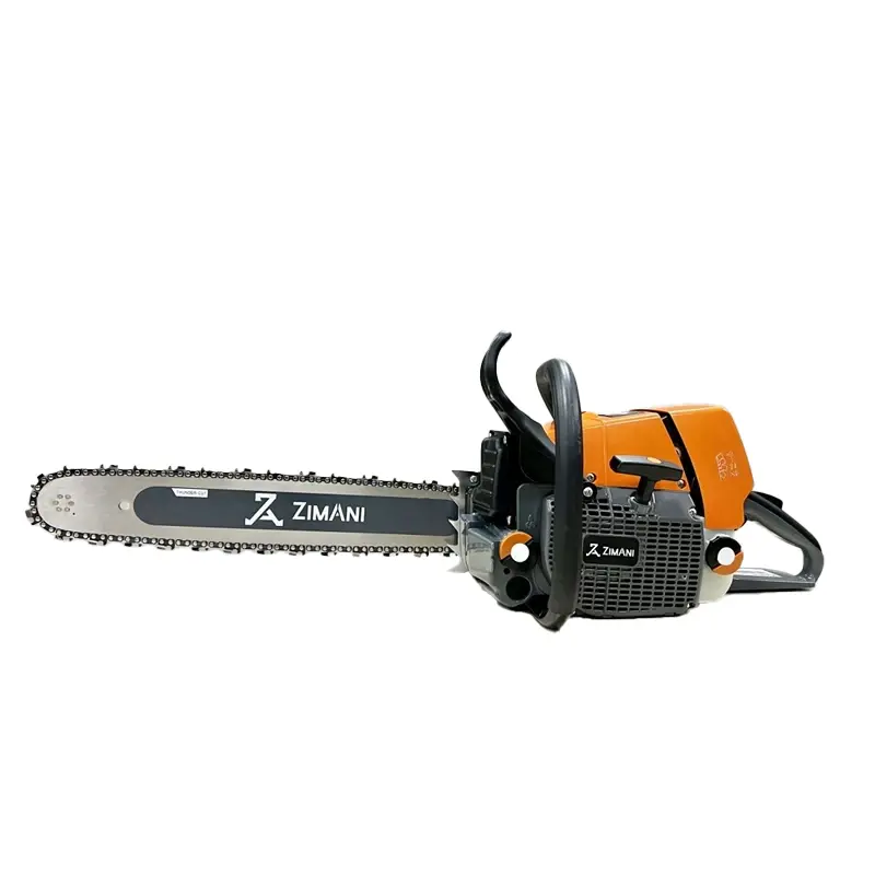 - Ручной тормоз ZimAni SpeedStop. Моментальная остановки цепи, является защитным механизмом для обеспечения высокой безопасности, необходимой при работе с бензопилами. Срабатывает, как механически при нажатии рукой на защитный упор, так и автоматически, при сильной отдаче или падении пилы, практически мгновенно останавливая пильную цепь. Защитная рукоятка тормоза крепится на двух опорах, что обеспечивает надежность и удобство.